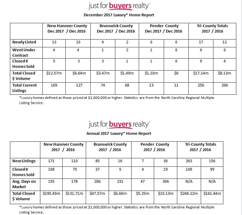 WILMINGTON, NC – Luxury home sales in the tri-county area boomed in 2017 producing the best sales numbers in a decade.