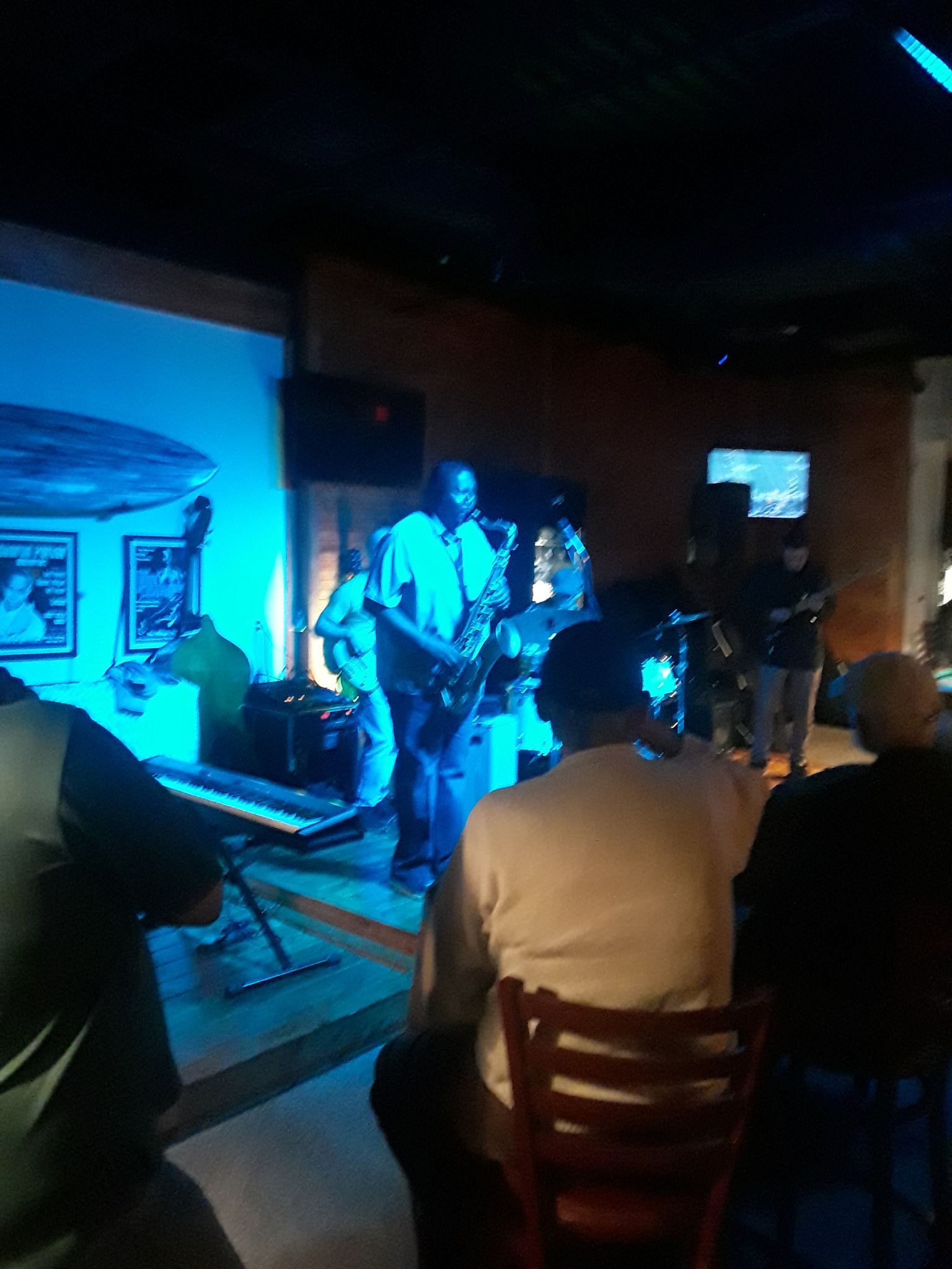 On the stage with Benni are three other musicians. At the start, there’s a drummer, a bass guitarist and a guy on the keyboard. As the night goes on others will join in. No one knows how many or what instruments they will be playing… it just all depends on who shows up this week.