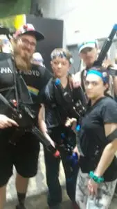 The action is set up that you’re playing with and against strangers. The Battle House hosts several games a day, each one 90 minutes in length. Anywhere from twenty to thirty people show up. The group is then broken down into teams and a series of games are played. There’s Capture the Flag, Defuse the Bomb, Disarm the Terrorist and simple all out War.