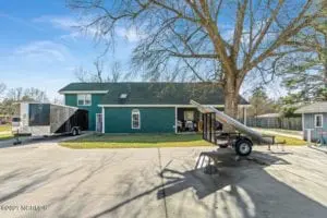 You’d never guess from this photo, but this is a massive home. It measures more than 4.500 square feet. It is situated on a double lot and includes four bedrooms, two living rooms, eat in-kitchen, dining room, massive bonus room, Carolina room, and 3 full bathrooms. Perfect for a big family and those that like to entertain! Outside you’ll find a front covered porch and a fire pit. 2 car-garage and a workshop-shed. Other features include wood planking and ceramic floors in all living areas. All this and you are only tens minutes to the town Calabash and the historic town of Little River. Asking price $425,000.