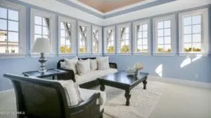 This home was on our list year until the owners decided to temporary cancel its listing. It’s now back on the market and our list. Even though this house is off of one of the busiest streets in town, we’re betting you probably never knew it existed. It sits on nearly 11 acres that fronts to the Intracoastal Waterway. This elegant estate includes a 6200 square foot main house, a two-bedroom carriage house, a three-bedroom guest house, and a pool house. The large indoor heated pool has a 50-foot extension for swimming laps; an expansive retractable movie screen for watching your favorite media while floating in the pool; his and her changing rooms; and an elevated area for all your professional exercise equipment. Inside the main house, even the most discriminating buyer will be impressed by all the custom features and details. A few examples: red onyx around the two-sided fireplace; bamboo floors with black walnut inlay; hand-woven carpeting up the main staircase and around the rotunda area; English Beech and eucalyptus wood in the great room; custom wrought iron banisters fashioned to look like sea grass; gravity glass sinks; and the list goes on and on. Did we mention the putting green, the 195 feet of Intracoastal Waterway frontage and 450’ pier with a gazebo? And the spectacular sunrises? Asking price: $6,999,000