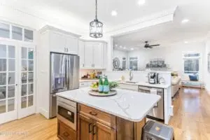 Just a few minutes from downtown Wilmington and Wrightsville Beach sits this four bedroom, three full bath plus three half bath home. The estate is called “Birds View” and as the name implies, this 2.5 acre home site offers plenty of opportunities to view birds, wildlife and the beauty of a large backyard pond. The custom home has recently been renovated, from top to bottom. Features include a ten foot ceiling downstairs and nine foot ceiling upstairs, lots of custom molding and transom windows, a grand foyer and an open floor plan that flows from foyer, to dining room to the great room, to sun room to kitchen and back to formal living room. The newly renovated custom kitchen has double ovens, microwave drawer, farmhouse sink, gas stove and white custom cabinets with quartz countertops. The brick deck in back is a wonderful area to overlook the fishing pond and creek. Two staircases, one in the foyer and one at the back entrance are both artistically pleasing! The spindles are different on purpose, and were designed to add architectural detail. There are three fireplaces, with one in the downstairs master bedroom. And did we mention that there are two master bedrooms? One downstairs and one upstairs. Additionally, there is a home office, a bonus room with a wet bar, a half bath and a Juliette balcony. On top of it all, literally, is an unfinished third floor that leads to ample storage for all the extras. Asking price $1,395,000