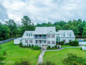 For the record there is a property for sale in Topsail Beach that is more expensive then home pictured above, but that listing is for a lot and a custom built home that at the moment does not exist. Therefore, the most expensive home that is actually standing in Pender County is this southern estate. The home is situated on 175 acres and located just 22 miles from Downtown Wilmington. The official listing is promoting this as an ideal setting for destination for weddings, special events, AirBnB accommodations, an equestrian center, camping, or hunting club. The main residence was built in 2004 with five bedrooms, five full baths, three half baths, a three car garage; an additional a 2280 square foot residence with five bedrooms and two baths, plus an 800 square foot renovated two bedroom, two bath guest cottage, and a peaceful, rustic cabin quietly centered in the middle of the woods with babbling creek. Additional structures open the door for even more possibilities with a 3000 square foot – 10 stall barn, paddock, riding arena, acres of fenced pastures, a regulation baseball field, tennis courts, a 60 x 30 pool, bathhouse, an enclosed picnic pavilion with full kitchen, a 1 acre lake with an island, bridge and gazebo, a garden area with greenhouse, a four hole-3 par golf course, marked trails for hiking or riding, a workshop, a 1100 sq ft game room, six additional buildings with 7000+ sq feet, and abundant wildlife for fishing or hunting. Asking price $3,000,o00