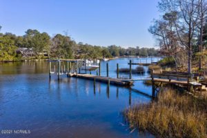 This is the first that this custom built four bedroom, three bath home has ever been on the market. Since 1978 it has been occupied by just one family. It is situated on 1 acre of land amid the majestic oak trees and other mature landscape with private access to the coastline of southeastern NC. This property comes complete with a private dock spanning approximately 60ft from the shoreline with a floating dock 42ft in length and 8ft wide. The dock also features your very own 10,000 pound boat lift. For launch and retrieval, the Trails End boat ramp is conveniently located at the end of Trails End Rd beside the Masonboro Yacht Club and Marina. If you prefer to store watercraft on your homesite, there is no HOA here. The dock is privately shared with the neighboring property at 127 Trails End through deeded transferrable agreement. The home has many features including six rear sliders providing cascading views of Whiskey Creek. Full length Trex decking across the entire back of the home which has been recently painted and has also seen a recent roof replacement. There are also two detached buildings that sit along the West side of the property, the larger of the two buildings is a wired workshop with water, air compressor, and mini split Heat and Air Unit. This building also has an extension with roll up metal door perfect for your riding vehicle or storage of recreational water items. Asking price $925,000