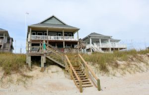 This immaculate 5 bedroom, 4 bath reverse floor plan oceanfront home complete with elevator, large decks and income is sure to be an oceanfront treasure. The home features plenty of parking and entrance to a bad weather entry on the ground floor. An elevator or stairs are available to all floors. The home features a large oceanfront master suite, hardwood floors along with tile in the bathrooms. The oceanfront great room features airy high ceilings with beautiful views and wet bar perfect for entertaining. Other key features are access to the oceanfront decks from each oceanfront bedroom and great room. In addition to the standard oceanfront decks this home features a very large oceanfront entertaining deck perfect for friends and large families. The home has been a very successful vacation rental consistently producing income. Asking price $1,450,000.