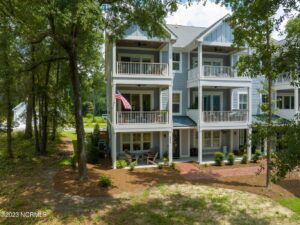 Exquisite home in Pointe West on Holden Beach with community beach access and community day docks. This Cape Cod-style home has an open inverted floor plan, Ash wood and tile floors and large decks to maximize the views. Gourmet kitchen with beautiful granite counter tops, spacious cabinetry and a walk-in pantry. Spacious wet bar with cooler and sink. The open great room allows for lots of natural lighting and water views….ocean to the south, ICW to the North. The first floor features a primary bedroom with two Walk-In Closets, and a private bathroom with a large walk-in shower. Also, two bedrooms with a shared bathroom, laundry room and spacious foyer. Marble counter tops in bathrooms. Whole house audio system with speakers in each room and deck. 3M film on windows and a Bahama Shutter on bathroom window for additional privacy. The elevator goes to each floor for easy access with luggage and groceries. The beautiful landscaped yard has over 100 different types of plants for the perfect oasis. Exterior has cedar planks and Hardie shingles. This spectacular home is calling your name! Not ready to retire…..this home would make a great short term rental until you are ready. Pool Contractor said a pool may be possible with property permitting on the South Side. Asking price $1,200,000.