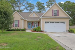 If you’ve been in search of a meticulously crafted home without the hassle of building, your quest concludes here with The Cambridge! Step into its welcoming embrace; a splendid home crafted by Caviness & Cates in 2022, nestled within the flourishing community of The Sanctuary at Forest Sound in Hampstead. Boasting 4 bedrooms and 3 baths, this residence spans over 2400 sq ft, with the majority of its living space gracefully distributed on the first floor. Adorned with a charming exterior featuring a painted white brick veneer and shake accents, The Cambridge is a visual delight. As you enter, natural light bathes the open kitchen, dining area, and great room, where a natural gas fireplace adds warmth and character. The kitchen is a culinary haven, adorned with timeless white cabinets, quartz countertops, a spacious center island, tile backsplash, and stainless-steel appliances, including a natural gas stove. Adjacent to the dining area is a spacious covered porch, seamlessly connecting indoor and outdoor spaces for delightful entertaining or relaxed grilling on the patio. The first-floor master suite exudes elegance, with a trey ceiling, expansive walk-in closet, double vanities, a 6-foot tiled walk-in shower, private water closet, and a linen closet. Two additional bedrooms on the first floor feature walk-in closets and access to a full hall bathroom. Ascending upstairs reveals the fourth bedroom, another full bathroom, and a bonus room – a perfect retreat for guests or teenagers. This home comes complete with notable features such as LVP flooring and crown molding in the kitchen, great room, dining area, and foyer, wainscotting in the foyer and up the stairs, oak tread stairs, epoxy garage floor, natural gas hot water heater, and gas HVAC. The Sanctuary at Forest Sound, centrally located in Hampstead, positions you just 15 minutes away from Wilmington or Surf City/Topsail, and a mere mile from the Intracoastal Waterway. A future proposed amenity includes a boat storage area, enhancing the allure of this thriving community. Asking price $485,000