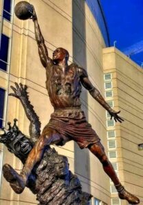 The sculpture shown on the left is located outside the Bulls stadium in Chicago. The future one in Wilmington will be located in a “highly trafficked” area near the front entrance of the new public space, ensuring that it becomes a prominent visual and cultural centerpiece for visitors.